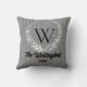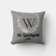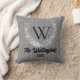 Op dit stijlvolle kussen is een grijs rustiek hout met een letter die je in het midden kunt aanpassen, gecombineerd met een elegante zilveren laurierkrans voor extra pop, dan hieronder is een gebied waar je het kunt aanpassen met jouw naam en datum. Rustieke elegante vibes.