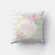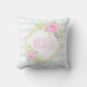 Monogram Fancy Roses Blueberry Sierkussen. Fancy bloemmonogram met rozen en bosbessen. Zeer en vrolijk, met licht Victoriaans of schitterende blik en gevoel. Kleurpasta: roze, blauw, groen. Lichtblauwe strepen. Roze en gouden monogram (goud is niet echt goud, maar kleur).