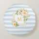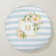 Monogram Floral Chic Pastel Blue Stripes Round Rond Kussen