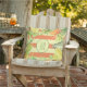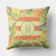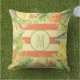 Stijlvolle kussens van buitenaf zijn voorzien van een monogram dat is omringd door tropische bloemen, vruchten en bladeren van de waterverf op een zacht bleek groene achtergrond en koraalstrepen. Punten in onze winkel koppelen.