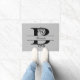 Op deze kenmerkende deurmat, is jouw naam in manuscript bij het centrum van een verdeelde bloeiende brief B. De naam en de brief zijn in zwart, en getoond op een middel aan lichtgrijze achtergrond. U kunt de achtergrondkleur veranderen, als u zou willen, door te kiezen om Ontwerp uit te geven. Elegance voor je ingang!