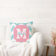 Monogram Gepersonaliseerd Blauw en Roze Chevron Kussen