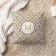 Monogram goud, zwart, witte art Deco Fan Flowers Kussen