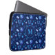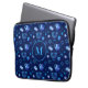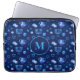Monogram. Happy Hanukkah Party Jewish Holiday Navy Blue Menorah patroon. Jewish Holiday Chanukkah Decoratie met traditioneel Chanoekanesymbool: Navy Blue color hanukkiah menorah, kandlestik met kaarsen, ster van David en neon blue ggloed illusie. Hanukkah Festival of light Event Decoration. Jeruzalem, Israël. Elektronica > Hoesjes voor tablets en laptops > Laptop Hoesjes > Laptop Sleeves. Judaica Modern Design met sjabloon van tekst. Pas hen aan door naam toe te voegen of wenst tekst. Twee zijkanten ontwerp.