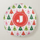 Monogram Initiaal Merry & Mod Retro Kerstboom Rond Kussen