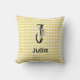 Monogram initiaal waterverf bloem gingham patroon Sierkussen. Brief J