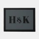 Een stijlvolle monogram deurmat met retro- typografie in het zwart en een eenvoudige zwarte rand op een zwarte achtergrond. Het perfecte cadeau voor het huishouden of accessoire voor elk huis!