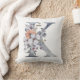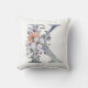 Een mooie monogrammed K, gooi kussen met een waterverf die blauw, roze en perzikbloemen heeft. Zie ons collectie voor andere letters van het alfabet.