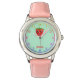 Monogram kawaii aardbeien fruit op turkoois horloge