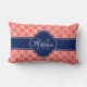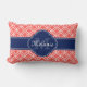 Koraal en wit Marokkaans roosterpatroon met een initiaal van de marine. Bovenop het koraalroze oranje en witte vervormingspatroon bevindt zich een blauw en wit zeeplek met een monogram letter en een naam sjabloon die u kunt aanpassen.