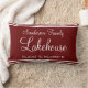 Maroon roest rood, wit Script voor Lakehouse of Beach House met uw coördinaten en naam Lakehouse, strand huis, modern, penseel script, kaart coördinaten, breedtegraad lengtegraad, oceaan aan zee meer, aqua blauwgroen blauw, seafoam groen, strand