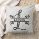 Zwarte monogram letter "L" met de familienaam op een berkenboom getextureerde achtergrond. De naam is bewerkbaar. De achtergrond kan worden gewijzigd.