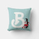 Een pinguïn staat met een rode en witte binnenbuis en een strandbal met een lichtblauwe achtergrond. Deze dierlijke cartoon met gepersonaliseerd monogram maakt een schattige en unieke kussen voor kinderen.