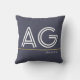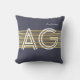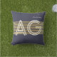 Aangepaste initialen en naam (een stijlvol monogram) op een blauwe achtergrond met dunne golden strepen