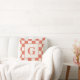 Monogram met terracotta crème geruite rand kussen