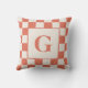 Stijlvol kussen is voorzien van een grote aangepaste donkerkleurige sinaasappels monogram in het midden binnen een gebroken wit vierkant met een terracotta en crème geruit randpatroon. Voeg je initiaal toe aan de zijbalk. Afwisselend verbrande oranje en beige vierkanten vormen het gedurfde geometrische patroon rond de randen. Om meer Geruite Terracotta en Cream items te zien, klik op de "Rocklawn Arts" link.