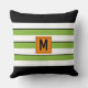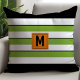 Monogram met vette groene strepen kussen
