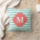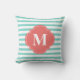 Monogram mint- en koraalstrepen kussen