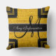 Monogram Modern Yellow & Black Burlap Rustic Jute Kussen