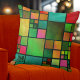 Een moderne ontwerpkussen met een geometrisch mozaïekpatroon met waterverf-effecten in verschillende kleuren. U kunt het ontwerp schrapen of roteren en de monogram tekst uitgeven of schrappen.