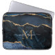 Monogram Naam Agate Navy Blue Gold Gemstone Marble Laptop Sleeve