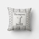 Dit monogram kussen is een geweldige manier om een onverwacht accent aan uw huis toe te voegen of een speciale aandenken voor een bruiloft of housewarming te creëer. Een zilvergrijs geometrisch patroon verschijnt tegen een witte achtergrond op zowel de voor- als achterkant van dit kussen. De letter "T" staat op een vierkant samen met de familienaam en het jaar. De letter, het jaar en de jouw naam kunnen snel en gemakkelijk worden gepersonaliseerd. Origineel ontwerp - C. McGouldrick