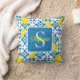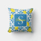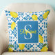 Monogram Name Blue French Tile Lemon Pattern Kussen