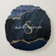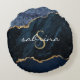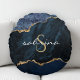 Monogram Navy Blue Gold Agate Geode Rond Kussen
