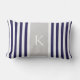 Elegante en moderne Sierkussennen met een stijlvol lendenformaat in de nautische stijl of Cushions met een eenvoudig, modern en stijlvol gestreept patroonontwerp dat aangepast is met uw initiaal in een preppy lettertype. Navy Blue en witte verticale strepen contrasted met een grijze achtergrond van kleurblokken. Pas je cadeau aan door je eigen initiaal toe te voegen. Kies uw eigen doopvont en kleuren om het uw te maken. Dit trendy moderne, stijlvolle ontwerp zal elk thuisdecor, woonkamer, sofa, slaapkamer, kantoor, boot, universiteit of studentenkamer verbeteren, tieners, jongens, meisjes, baby, kleuterkamers en kinder kamers. Kies uw grootte van kussen of kussen.