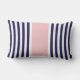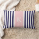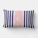 Elegante en moderne Sierkussennen met een stijlvol lendenformaat in de nautische stijl of Cushions met een eenvoudig, modern en stijlvol gestreept patroonontwerp dat aangepast is met uw initiaal in een preppy lettertype. Navy Blue en witte verticale strepen contrasteerd met een Pastel Roze kleurenblokachtergrond. Pas je cadeau aan door je eigen initiaal toe te voegen. Kies uw eigen doopvont en kleuren om het uw te maken. Dit trendy ontwerp zal een groot geschenk voor jezelf of iemand speciaal maken en elk thuis, kantoor, boot of rug verbeteren.