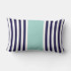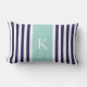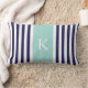 Elegante en moderne Sierkussennen met een stijlvol lendenformaat in de nautische stijl of Cushions met een eenvoudig, modern en stijlvol gestreept patroonontwerp dat aangepast is met uw initiaal in een preppy lettertype. Navy blauw en witte verticale strepen contrasted met een Mint Groene kleurenblokachtergrond. Pas je cadeau aan door je eigen initiaal toe te voegen. Kies uw eigen doopvont en kleuren om het uw te maken. Dit trendy kuststrandontwerp zal een groot cadeau voor jezelf of iemand speciaal zijn en elk thuis, strandhuis, kantoor, boot, slaapkamer, sofa, lounge of universiteitsdorm verbeteren.
