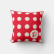 Monogram Polka Dots in Zacht Wit op Helder Rood Kussen
