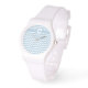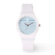 Een stijlvol en sportief polshorloge met een witte siliconenband om te personaliseren met je initiaal, en een chevron-patroon in trending Dusk Blue en White.