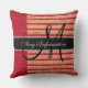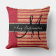 Monogram Red Stripes Burlap Rustic Jute Kussen