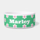 Monogram Retro Madeliefjes Patroon Roze & Groen Op Voerbakje