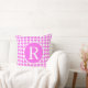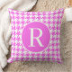 Roze ronde lijst monogram houndstooth patroon vierkante worp kussen