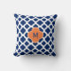 Gemonogrammeerd royal blue quatrefoil patroon met oranje accent.