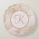 Monogram Roze en witte marmer Glitter Glitter Rond Kussen
