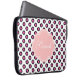 monogram roze en zwarte cirkel polka stipt laptop sleeve