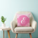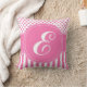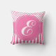 De roze en witte kleuren maken van de kussen van dit verpersoonlijkbare meisje een prachtige aanvulling op haar eigen slaapkamer of kinderspeelkamer. Voeg een monogram initiaal toe wanneer u opdracht geeft. Roze poka punten en strepen achtergrond.