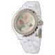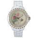 Monogram initiaal, rozen antiek illustratie, vliegende zwaluwvogel / libel, dameshorloges, boeket van rozen / bloemen, rode en roze rozen, drieletterige monogram sjabloon, bruine tekst aanpassen, script lettertype, vrouwelijk / chique / elegant bloemontwerp, ouderwets / antiek rozen, eenvoudige / romantische digitale collage, handgeschreven achtergrond, antiek / stijl / look / inspiratie, 1800s Victoriaans tijdperk, gewijzigde kunst, crème achtergrond, roos bloei, roos bloesem, vintage afbeelding van gemengde bloemen, textuur. Monogram horloges voor vrouwen, door red_dress, met een digitale collage van romantisch boeket van rode en roze rozen, een vliegende zwaluwvogel en libel, met een tekst sjabloon voor uw drie letter monogram initialen (script lettertype, in bruin). Het boeket van bloemen is bedrukt tegen een handgeschreven achtergrond en vormt een gestructureerd en armoedig patroon, in tinten beige. Pas eenvoudig stijlhorloges voor vrouwen aan, met uw monogram-initialen. veranderde kunst (antiek bloemontwerp) digitaal gemaakt door red_dress, met behulp van antiek afbeeldingen, uit de jaren 1800, van ouderwetse rozen.