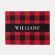 Dit lumberjack stijl rood en zwart buffalo controlepatroon doormat heeft een zwarte strip over het centrum met een familienaam in witte tekst. Pas je aan met je eigen naam of geef je als cadeau.