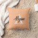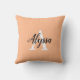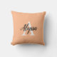 Monogram Script Stylish Peach Sierkussen met een elegante indeling van naam en monogram initiaal op een perzikkleurige achtergrond. Het kussen met worp is eenvoudig te personaliseren door de naam en het initiaal van uw keuze in de online personalisatie-sjabloon te typen voordat u bestelt. De tekst kopieert automatisch over naar de andere kant van het kussen om de identieke naam en het initiaal aan elke kant te shows.