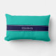 Monogram Solid Blauwgroen, Navy Blue Ribbon Name Kussen