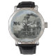 Dit horloge zou een attent cadeau zijn voor een treinliefhebber. Het gezicht van het horloge is voorzien van een stoommachine trein in een sepia kleur met lichtblauwe accenten (sky) en een gebied voor personalisatie, monogram, of andere tekst. Een horloge zou voor hem een geweldige gelegenheid of vakantiegeschenk zijn.