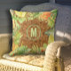 Stijlvolle kussens van buitenaf zijn voorzien van een monogram dat is omgeven door tropische bloemen, vruchten en bladeren van de waterverf op een geweven vlechtwerk. Punten in onze winkel koppelen.