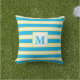 Voeg je woonruimte in de buitenlucht toe met kussens. Dit vierkant werpt kussen met turquoise, gele en witte strepen. Voeg uw monogram toe aan deze kussen of personaliseer het met jouw naam. Kussens zijn een geweldige manier om je zitplaats te accentueren door het oog aantrekkelijk te maken. Koop voor jezelf of koop als huisverwarming of een ander cadeau voor die speciale persoon. Als u liever binnenshuis gebruikt, bewerkt u deze om de structuur te wijzigen.