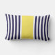 Elegante en moderne Sierkussennen met een stijlvol lendenformaat in de nautische stijl of Cushions met een eenvoudig, modern en stijlvol gestreept patroonontwerp dat aangepast is met uw initiaal in een preppy lettertype. Navy Blue en witte verticale strepen contrasterend met een Lemon Yellow kleurenblokachtergrond. Pas je cadeau aan door je eigen initiaal toe te voegen. Kies uw eigen doopvont en kleuren om het uw te maken. Dit trendy ontwerp zal een groot geschenk voor jezelf of iemand speciaal maken en elk thuis, kantoor, boot of rug verbeteren.