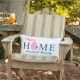 Stijlvolle welkomstkussens bevatten "Home"-tekst met een Michigan-staatskaart en aangepaste tekst die kan worden gepersonaliseerd met uw familienaam en de stad, waar u woont. De hartstedenmarkering kan via Gepersonaliseerd naar de juiste locatie worden verplaatst. Horizontale strepen maken de achterkant omhoog. Blauwe, roze en witte kleuren.