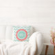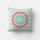 Monogram van munt en koraal chevron kussen